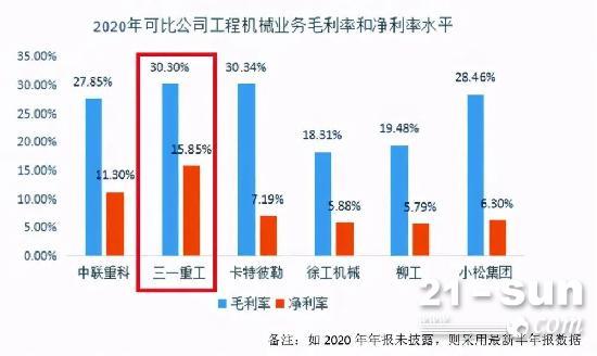 很明顯,在主要工程機械廠商中,三一重工的毛利率處于領先地位,甚至與全球機械巨頭卡特彼勒不分伯仲。至于說公司凈利率,憑借出色的供應鏈管理和內部管理能力,三一重工的凈利率也遙遙領先。